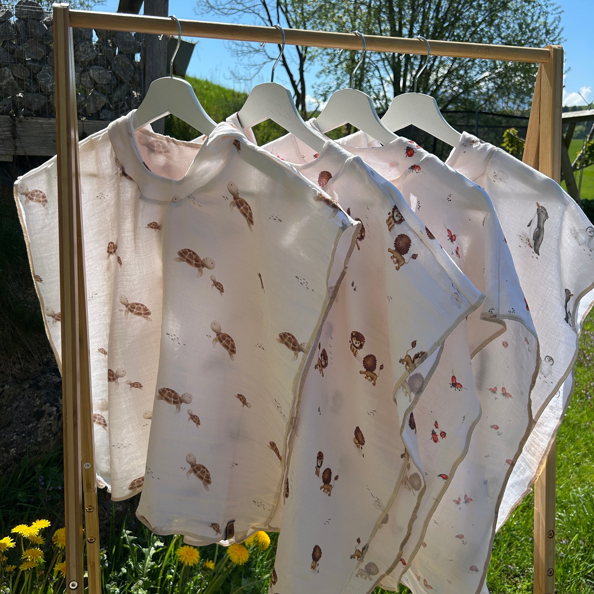- After bathing, they are quickly dressed and thanks to the high absorbency of the muslin, the kids are dry again in no time. Then simply hang it up and the poncho will be dry and ready for use in no time!